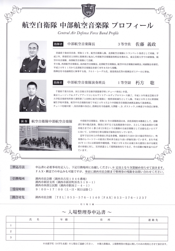 ■航空自衛隊中部航空音楽隊ふれあいコンサートへのお誘い!