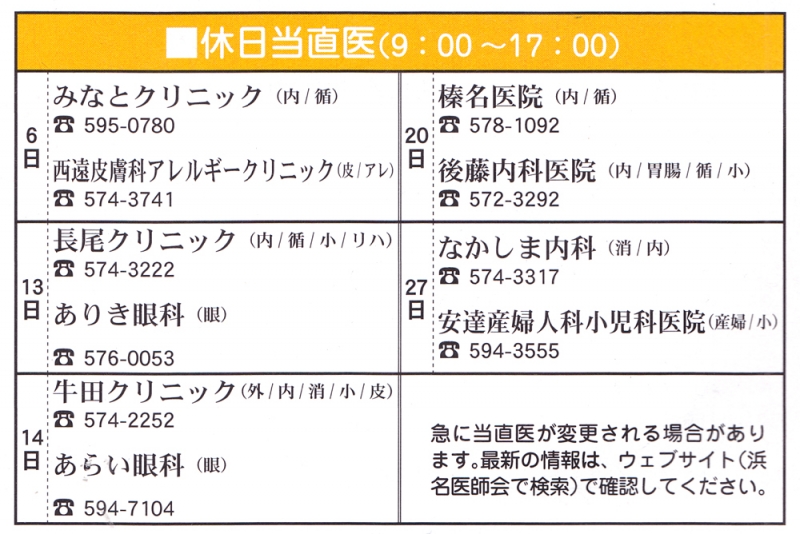 TOP > トピック一覧 > 地域情報 > 2013年10月の当直医(湖西・新居)情報