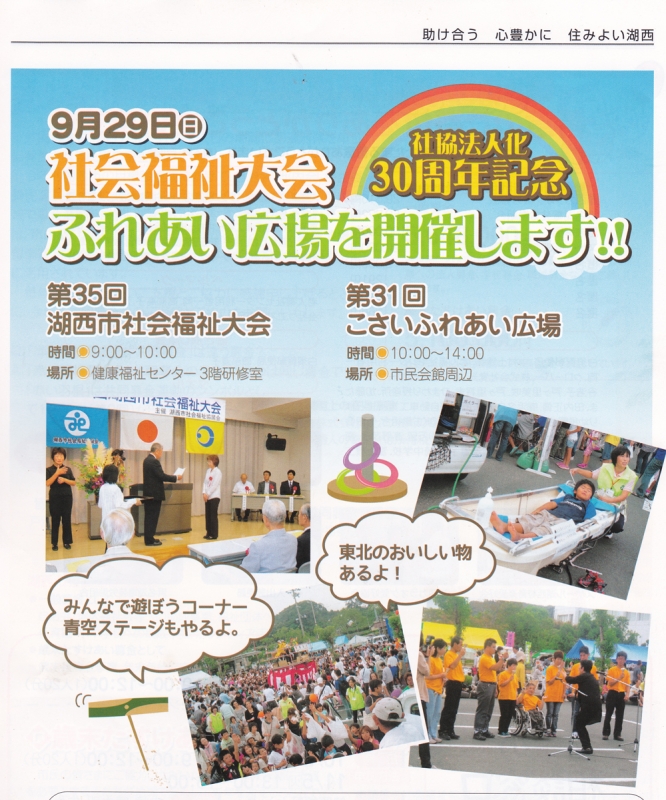 TOP > トピック一覧 > 地域情報 > 9月29日(日) 第35回湖西市社会福祉大会・第31回こさいふれあい広場