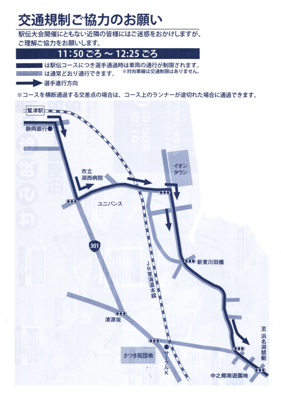 ■コースとなる道路は交通規制開始から最後の競技者が通過するまで(約20分間)車両の交通規制が制限されます。