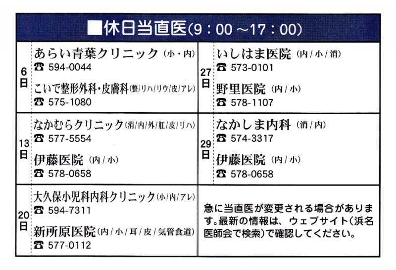 TOP > トピック一覧 > 地域情報 > 4月休日当直医(9:00~17:00)