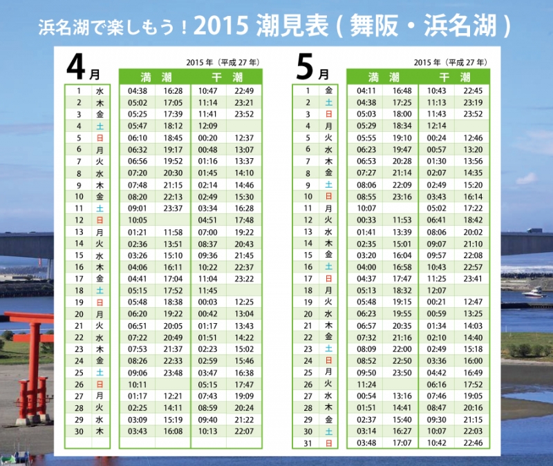 浜名湖舞阪港・4月5月の潮見表です。