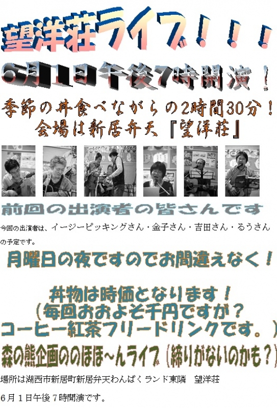TOP > トピック一覧 > 森の熊さん > 望洋荘でライブ!