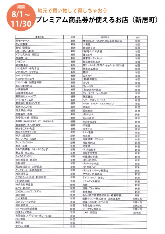 ※ 下記画像は商品券の応募と新居町の取扱店です。