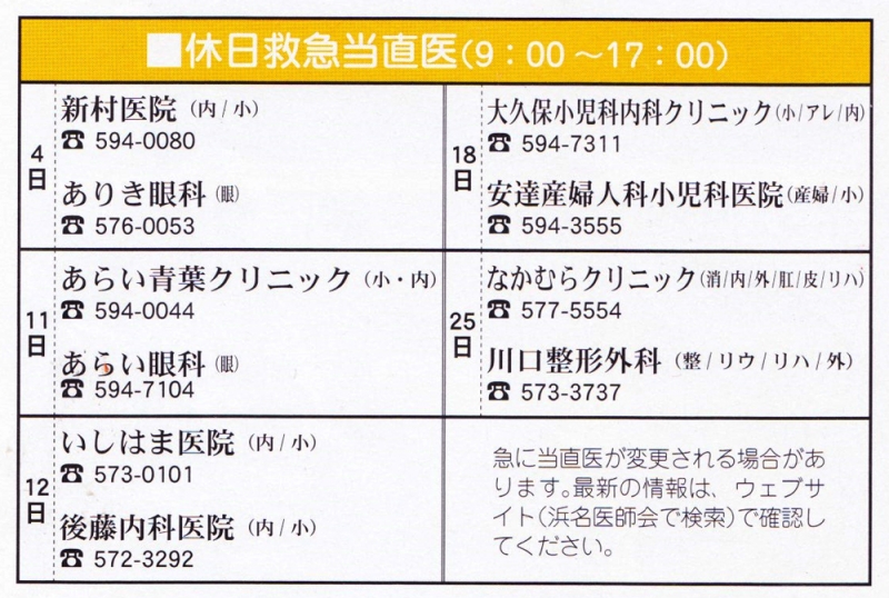 TOP > トピック一覧 > 地域情報 > 2015年10月 湖西市休日当直医情報です。