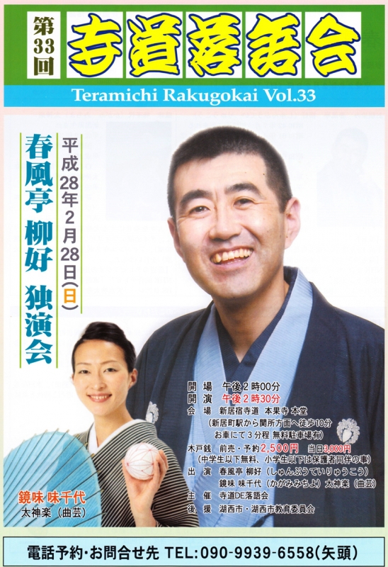 TOP > トピック一覧 > 地域情報 > 第33回寺道落語会 2月28日