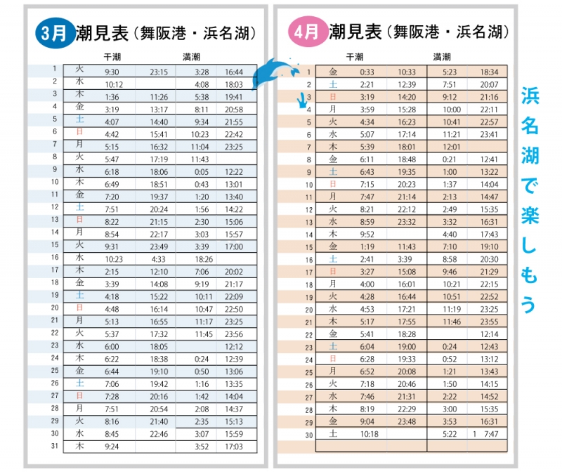 TOP > トピック一覧 > 地域情報 > 2016年3月4月の浜名湖(舞阪)潮見表