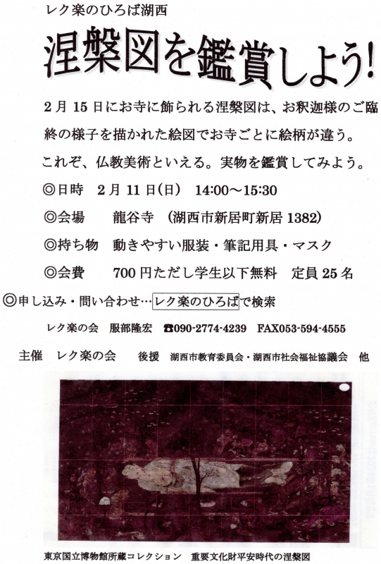 TOP > トピック一覧 > > レク楽のひろば湖西「涅槃図を鑑賞しよう!」