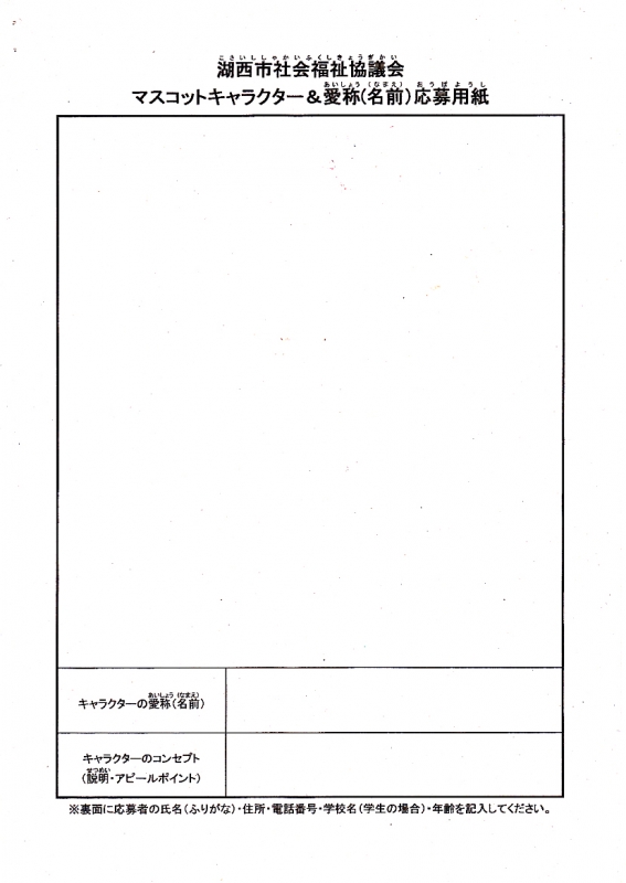 湖西市社会福祉協議会 「マスコットキャラクター」に応募しませんか!