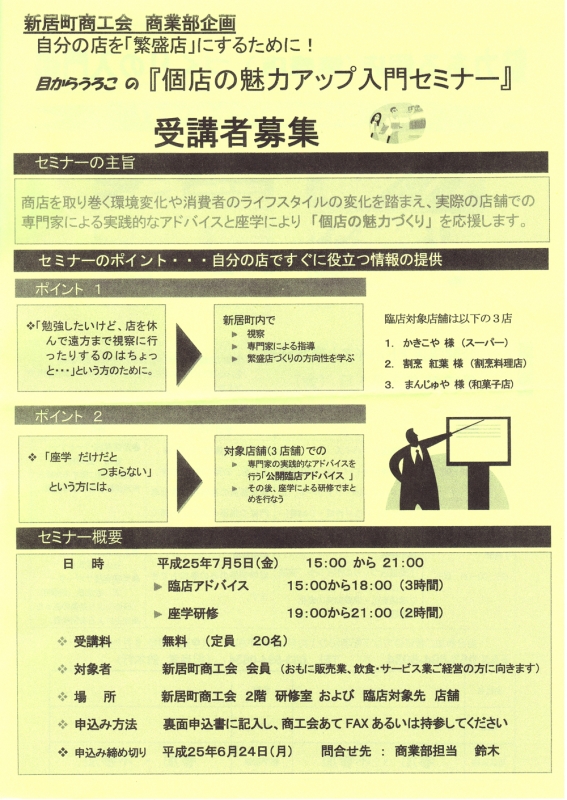 個店の魅力アップ入門「新居町商工会商業部企画」