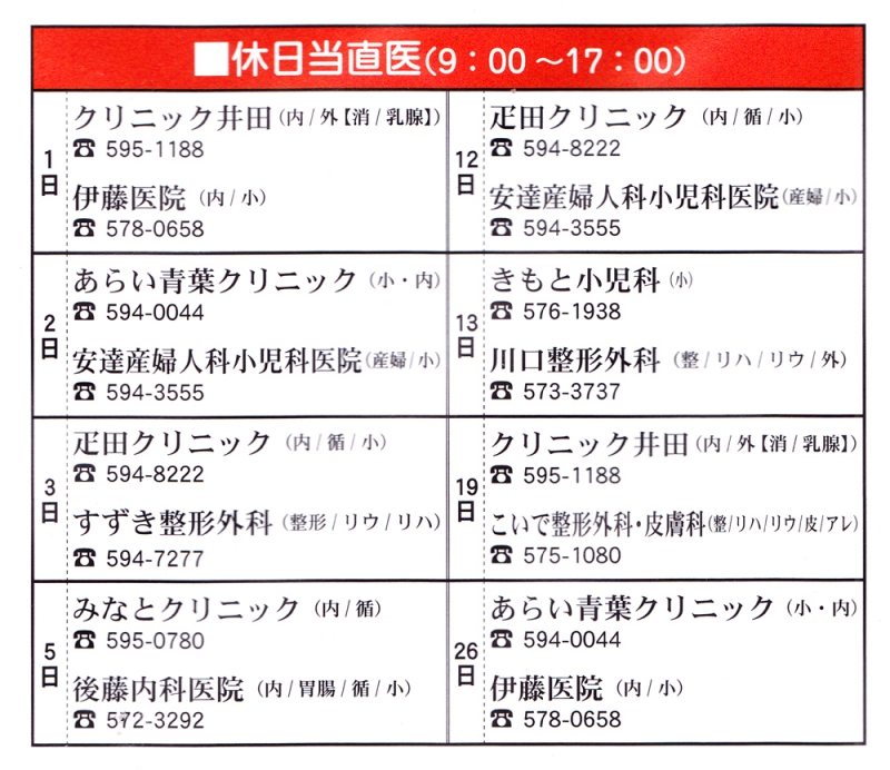 TOP > トピック一覧 > 地域情報 > 1月の休日当直医(湖西市内)