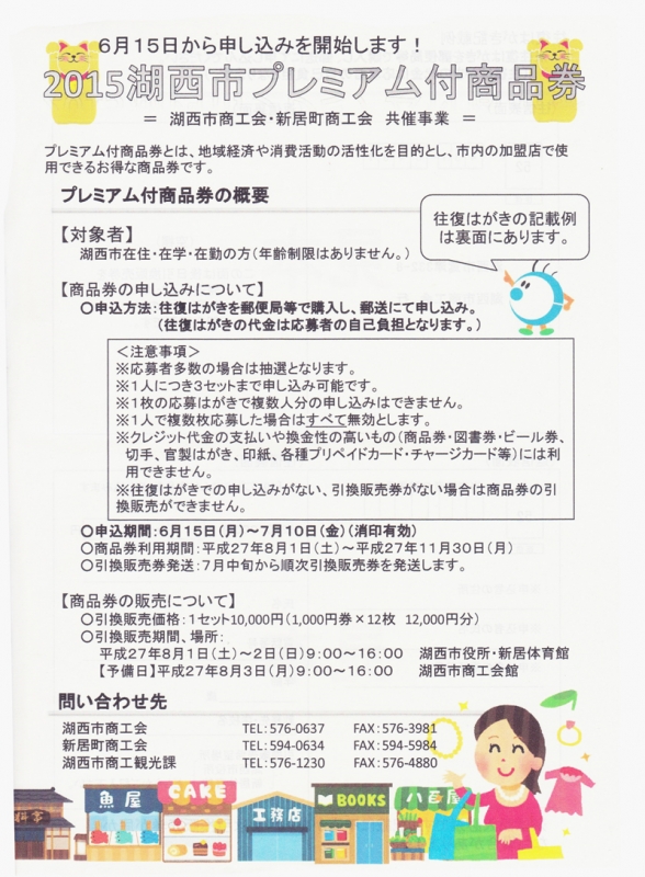 総額1億8000万円、「湖西地域の活性化を狙いとした「湖西プレミアム商品券が発行されます。