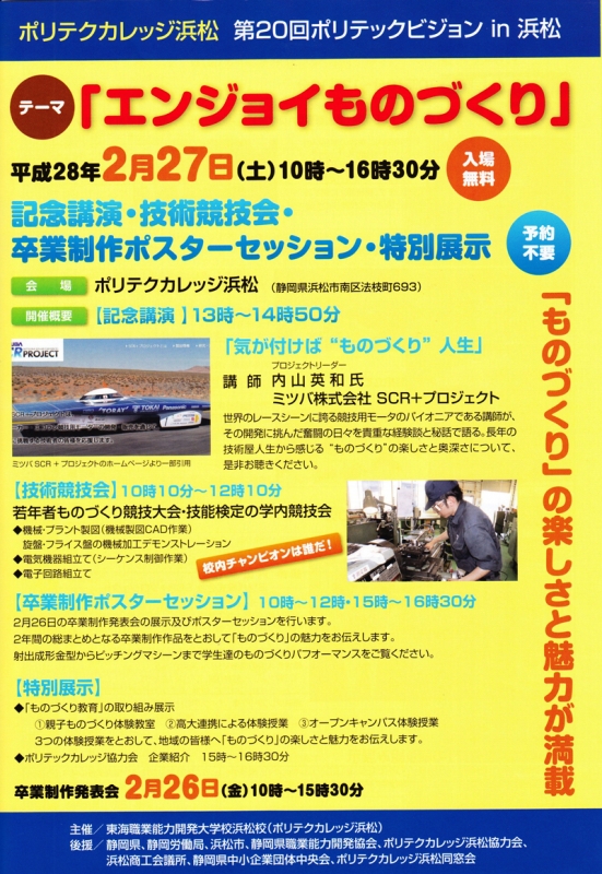 TOP > トピック一覧 > 地域情報 > ポリテクカレッジ浜松 第20回ポリテックビジョン㏌浜松 2月27日