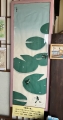 小松楼まちづくり交流館の玄関入ってすぐに京都・永楽屋さんの手ぬぐい「睡蓮に蛙」を展示しました。
