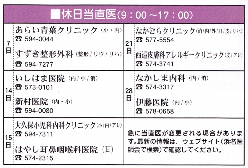 TOP > トピック一覧 > 地域情報 > 2013年7月 湖西市休日当直医情報。
